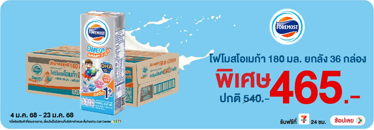 โฟร์โมสต์ โอเมก้า นมUHT รสจืด 180 มล. (ยกลัง 36 กล่อง)
